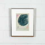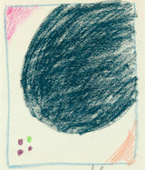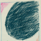 This drawing is emblematic of the stain paintings of the era; large lopsided round shapes attempt to dominate the picture plane, intimidating other smaller forms and colors, whether mini circles or soft borders.