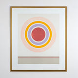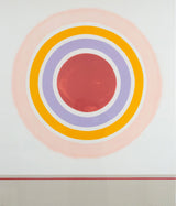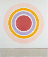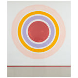 "Blush" is simultaneously one of his iconic targets and a classic study of color interaction. Noland offers the relationships between contrasting or complementary colors, realized in thin yet opaque layers, as each tone reveals its characteristic weight, density, and transparency. Similar to his targets, the circles are slightly irregular as is the density of ink on the surface.