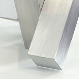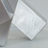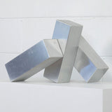 Like the best of Eloul's works this sculpture is created from three brushed aluminum rectangles captured in motion.