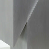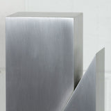 This sculpture is emblematic of Eloul's iconic style. Larger-scale versions of this sculpture have been exhibited around the world including variations in New York, Toronto, and Mexico City. These angled sliced rectangles and their medium are iconic Eloul.