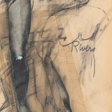 "Venus" is a remarkable example of River's signature aesthetic. Executed in rough, expressive linework, the artist renders three iterations of the Venus de Milo at various stages of completion. Of the three figures, one faces the viewer, her contrapasso pose emphasized by a collage component that adds an element of realism.