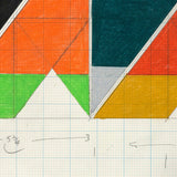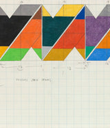 By the mid 1960's, Zox arrived at his characteristic style, utilizing hard-edge shapes in bold colors to create geometric patterns, which were often created on raw canvas.
