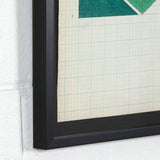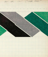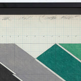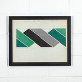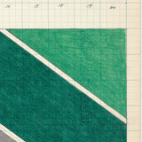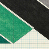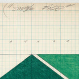 “Single File” is a quintessential example of his mastery of geometry and color. In this exemplary work on paper, Zox’s drafting process is left exposed, containing the boldly-colored geometrics.