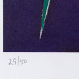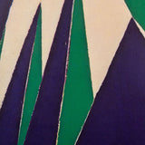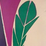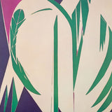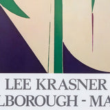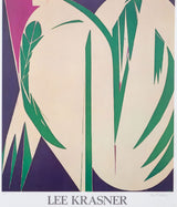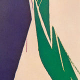 This 1973 offset lithograph depicts Krasner’s “Rising Green”, painted in 1972. "Rising Green" is a fine example of Krasner’s work during this period when she began experimenting with hard-edged forms and cut-outs while limiting her palette to a few bright saturated colors. Krasner’s use of blunt lines and stark negative space creates a striking composition that still manages to capture the softness of the greenery depicted in this piece.