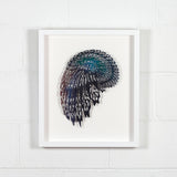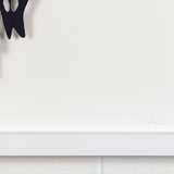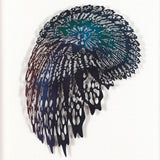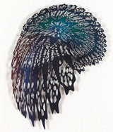 "Cascade" is a paradigm of Lizz Aston's work. One can identify, in the upper right section of the form, and intricate and "traditional" decorative element that has been gradually and meticulously distorted. It appears that the lower core of the form is mutating and crawling away from its historical composition. To amplify the form's impressive structure and presence Aston elevates the cut-out with an array of pins creating dramatic shadows.