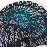 Aston's practice is inspired by the history and production of textiles and decorative arts. She frequently adopts an anonymous textile pattern, such as a hand-made lace doily, and then manipulates it digitally before creating a new contemporary descendant. These transformed and augmented patterns are then hand-cut on fine Japanese Kozo paper (aka mulberry paper) which are then painted, stained or dyed.