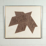 "Nightstar" is an interesting work within the group of about ten cast paper prints Nevelson created, not only for its form but its interesting mink-like color. Similar to Nevelson's sculpture the form appears to be assembled of numerous wooded elements that have been arranged and painted a uniform color.