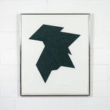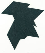 This work is a paradigm example of Nevelson's printmaking practice. Nevelson utilized the rare printmaking technique of cast paper, whereby paper fibre or pulp is formed using a mold, and employed it in a relief. The striking shape and features of the work have classic Nevelson shape and elaborately patterned texture, in a deep greenish slate.