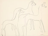 This unique and elegant line drawing reveals a distinct expression of modernism. It's a delightful rarity to see Nevelson's hand executing a work featuring animals.