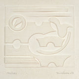 This work is a paradigm of Nevelson's printmaking. Nevelson utilized the technique of cast paper, whereby paper fibre or pulp is formed into a mold, creating a relief. The striking shapes and features of the work have Nevelson's classic shape and rich texture.