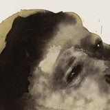 In "United Europe," Dumas presents a close-cropped portrait of a reclining figure, rendered in fluid color that marbles over the skin. The subject gazes forward, their heavy eyes dimmed and mouth slightly parted. This fragile disposition paired with a ghostly and translucent palette evokes a sense of vulnerability. Is this a living figure or a corpse?Â