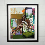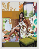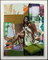 Mickalene Thomas (b.1971) is a renowned artist exploring the intersection of popular culture and art history, through a contemporary Black female gaze. She studied at the Pratt Institute, and earned her MFA from Yale. As an openly gay Black woman, sexuality and race are essential elements of Thomas' practice.