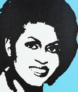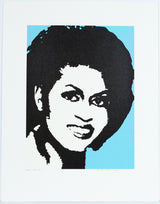 "Michelle O" is a striking screenprint of former First Lady Michelle Obama. Thomas was commissioned by the New York City Board of Education and created the work to commemorate Barrack Obama becoming the first African-American President. In 2008 many artists focused on creating images of Barrack Obama, while Thomas chose the new First Lady Michelle as her subject.