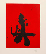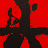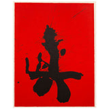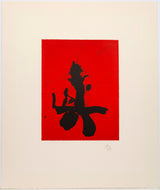 "Red Samurai" from the Octavio Paz Suite of lithographs, is a paradigm of Motherwell's oeuvre: an aggressive black form with explosions and slashes radiating out from it. This is one of Motherwell's most potent images, invoking elements of sexuality in the phallic abstract form and violence through the title and bright red background.