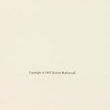 As a passionate lover of poetry, Motherwell compared his own visual language to that of poetry. One of his favorite poets and dear friends was Octavio Paz. Originally from Mexico, Paz was an essayist, poet, and Nobel Prize Winner. The two shared a mutual admiration for one another and after each dedicating works to the other they decided to collaborate. Together they produced Three Poems (1987-1988), a suite of 27 lithographs with accompanying poetry by Paz translated into English.