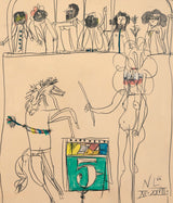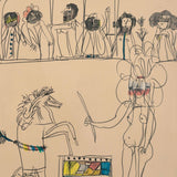 This work, like many of Laliberte's finest, has a curious ambiguity. Is this a circus scene? Or is this a fantastical representation of something more sinister?