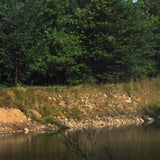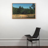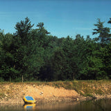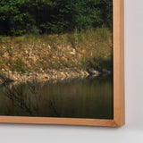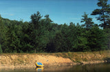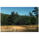 In this image, Doig presents a warm summer landscape, skillfully capturing the sun-kissed creek that sweeps across the lower half of the composition. A float rests precariously along the bluff, perhaps suggesting the presence of someone nearby.