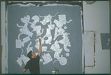 At this early stage of his career, the YYZ provided him space and support to create freely while respecting his practice. It’s interesting to notice that 'Grey Abstraction' already explores patterned fields of geometric shapes, ribbon lines and vortices. The last two images show the artist at work on the material shown in Toronto in 1980.