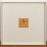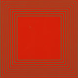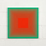 This vibrant screen print is characteristic of the artist’s practice, utilizing citrus colors and blues in concentric squares to draw in and obfuscate the gaze.