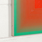 One of our favorite American artists, Richard Anuszkiewicz (b. 1930) is a major player in both Op Art and Hard-Edge Abstraction. His work is typically composed of neon candy colors in strict geometries.