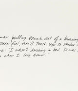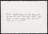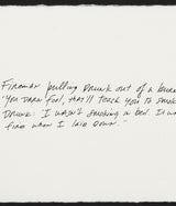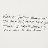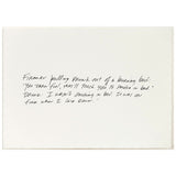 This example from this "Greeting Cards" series is a fine example of one of Prince's jokes. Resembling a classic Hallmark card, this work features a joke handwritten by the artist. In ‘Burning Bed’, we read: “Fireman pulling drunk out of burning bed: “You darn fool, that’ll teach you to smoke in bed.” Drunk: “I wasn’t smoking in bed. It was on fire when I laid down.”
