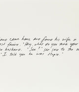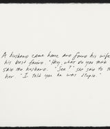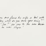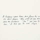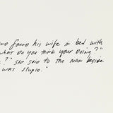 The earliest of Prince's jokes were similar to this print - they appeared to be simple handwritten notes. Their simple, or anti-aesthetic seemed to be simultaneously parodying tropes established by Conceptual and Minimalist artists of the previous decade (Yoko Ono comes to mind)