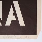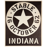 "Stable Gallery Exhibition Poster" is a historic memento that announces Indiana's first solo show in 1962 at the Stable Gallery in New York. (If you are not familiar with the legendary gallery, they hosted one of Warhol's first paintings solo shows) This bold poster perfectly demonstrates Indiana's distinct aesthetic and includes some of his most recognizable motifs: a star, a concentric circle, and curved text in his signature stencil font.