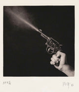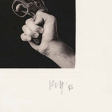 Shot in his signature black & white, this work is from his A Season in Hell portfolio featuring a hand firing a revolver. The wrist, hand, gun, and firing trajectory extend in a striking diagonal line from corner to corner, displaying Mapplethorpe's unrivaled eye for composition and texture.