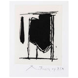 "España I" is a striking example of Motherwell's printmaking. The work features dense and indiscernible black forms that appear to be suspended within a narrow frame. The forms swell and expand within their constraints, exuding a visceral energy that is signature Motherwell.