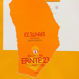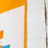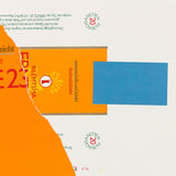 In “Harvest, With Leaf”, we see the results of the new creation process, where a hybrid of lithographed print and collage would be collapsed into one print. Motherwell’s highly textured paper, seen here and in the rest of the series, would be accompanied by hand torn found materials. In this print, the vibrant coloured base, an icon of the series, is adorned with the packaging of German cigarette brand, "Ernte 23"