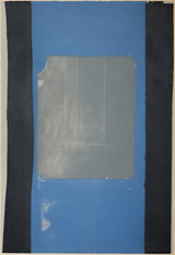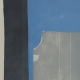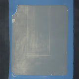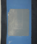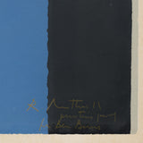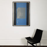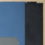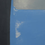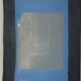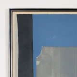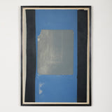 This lithograph is visually bold. Framed by opaque black bands, and set among a striking blue flat, sits a grey impression. Etched with subtle lines and reminiscent of Motherwell's Open paintings, the central grey rectangle and its surrounding composition come together in a paradigm of Motherwell's oeuvre. His use of grey paper is clever, as the exposed sheet on the left mingles with the applied compositional elements. This combined with the textured application throughout, force the viewer to reckon with which greys are applied, and which are the substrate showing through.