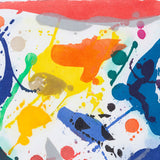 "Untitled (Embrace)" is an excellent example of Sam Francis' printmaking practice from the last chapter of his career. In his signature palette of bold colors, Francis weaves several abstract shapes together in an eye-catching and harmonic composition. Francis' late works are notable for their depth of palette. In addition to canary yellow, fire-engine red, and electric green, are rich dark colors such as grey, teal, and plum.