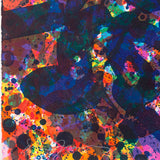 "Her Blue Deeps" exemplifies Francis' vibrant aesthetic with a rich palette centered on lush sweeps of deep indigo and cerulean blue. Underneath the swirling, intense forms that blanket the surface, vivid accents of turquoise and blood orange emerge, imbuing the composition with an incredible sense of depth and wonder. Although this print was created in the 1970's it certainly evokes the aesthetic and approach of Francis' work in Paris - and his contemporaries that inspired him notably Jean-Paul Riopelle.