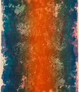 “Fire” displays the artist’s characteristic flow application of color. The resulting panels of color interact but remain formally distinct.