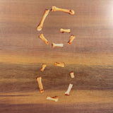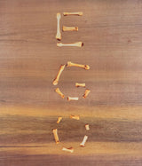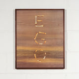 "EGO" is an excellent example of Charlesworth's distinctive photography style. The word 'ego' is spelt out using cut-out images of bones. Bones throughout art history have often functioned as symbols of mortality, permanence beyond death, and/or one's Earthly passage. Charlesworth often employed images with easily identifiable symbolic associations which she could exploit and subvert. The collaged bone pieces are set against a background of wood texture.