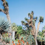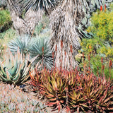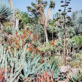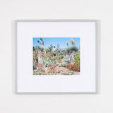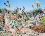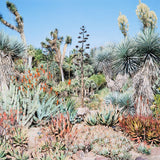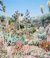 This dynamic image features a bed of exotic succulents densely arranged under the radiant California sun. The composition has an otherworldly quality, prompting the viewer to imagine what it would be like if they were able to experience the abundant vegetation first-hand.Â
