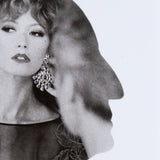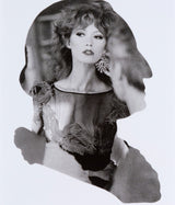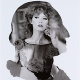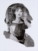 “President Profile” features the image of a glamorous woman from a magazine editorial, the perimeter of which has been cut to resemble George Washington’s silhouette. “President Profile” is part of a larger series of similar works featuring the silhouettes of equally recognizable presidents, Abraham Lincoln and John F. Kennedy.