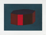 This aquatint is from his 1990 series "Forms Derived from a Cubic Rectangle". It was a set of prints that complemented the wall drawings Lewitt was creating. A key approach to his practice, LeWitt is exploring the possibilities of variations from a specific geometric form.