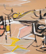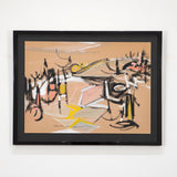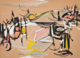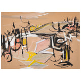 In a later chapter of his fascinating career Tanabe overtly merges abstraction with figuration. In this work, do you see a reference to representation? Is the yellow yolk-like form in the upper center of the composition, an element of abstraction...or the sun about to descend behind a sloping hill? Regardless, this is an impactful and elegant example of Tanabe's from the 1950's.