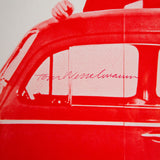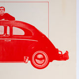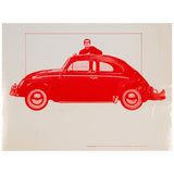 This Green Gallery exhibition poster features a playful image of Wesselmann peaking over a 1965 Volkswagen Bug which was a ubiquitous symbol of pop culture at the time and a frequent early motif for Wesselmann.