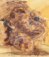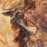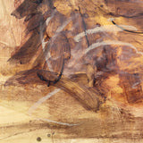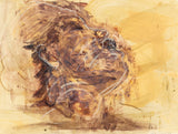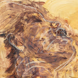 Rendered in rich shades of umber and sienna, Scherman depicts the profile of his subject through a series of expressive, layered brushstrokes. The vigorous brushwork muse with their head emphatically thrown back, evoking an ambiguous sense of impassioned dynamism.