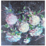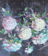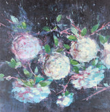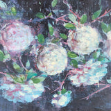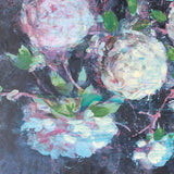 This moody depiction of a bouquet of peonies is a fantastic example of Scherman’s singular aesthetic and technique. Rich, textured layers of creamy pastels are met with an intense midnight background, creating a luminous composition that amplifies the peony’s abundance.