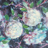 Unique to this work is the unexpected vantage point which seemingly captures the flowers plunging downward, perhaps a result of their weighted blooms. While peonies are voluminous and intricate, they have a notoriously short blooming season of about seven days, making them exceptionally impressive and extremely ephemeral.