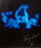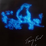 "My Favourite Little Bird" is a sublime merging of two Emin's signatures: neon and birds. This vibrant bird was crafted in neon using lines to mirror Emin own hand-drawn sketches. This lithograph captures the neon-blue bird on a branch sculpture she created in 2010 for the façade of London’s Foundling Museum.
