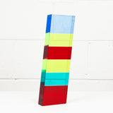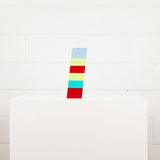 In this dynamic sculpture, Mihich has created a bold combination of pure colors evocative of many of the African symbols of statehood. We love the subtle leaning composition of this sculpture and the thick bands of pure color.