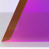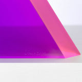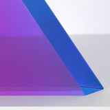 "Bel-Air" is composed of the artist's favorite shades - grape, magenta, sky blue and a hint of tangerine. Like the best of his work, depending on how you position the piece, different colors will emerge, overlap or recede. How one illuminates the piece, whether with natural light or electric from above, will affect the colors, taking on different intensities with varying translucency.