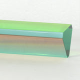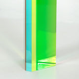 Primarily composed of lemon lime shades, different angles bring out the full spectrum contained this work. Different regions of color present themselves, overlap with another or disappear depending on the work's position and lighting.