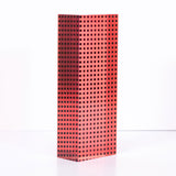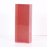 As with the best of Mihich's work, the geometric pattern and color distort as the viewer moves around the sculpture. In this case, causing the unified grid to slant, expand, and completely vanish depending on the vantage point.