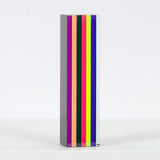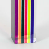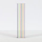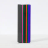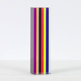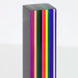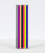 In this vibrant rainbow sculpture, Mihich layers thick solid color stripes juxtaposed with thin ones. Each side takes on a new quality as the viewer moves the work, revealing different colors, stripe patterns and lighting. The different colors and patterns merge, overlap or disappear. This work showcases Mihich's mastery of this technique and the ways in which different colors and patterns interact, creating dynamic color shifts as a unified work.