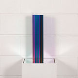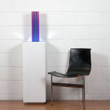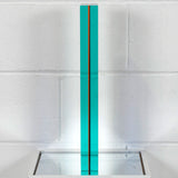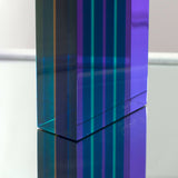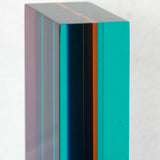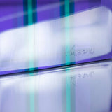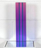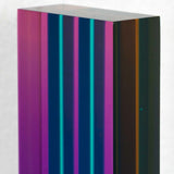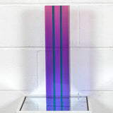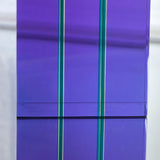 Two stripes of translucent jade green create a highway pattern through the center of this rich purple sculpture. Saturated, hypnotic colors that are sweet and enchanting, but never static.